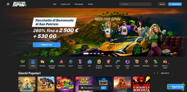 | Need for Spin | 260% fino a 2.500€ + 530 FS | Curacao | Piattaforme top, assistenza 24/7 | ⭐⭐⭐⭐½ |